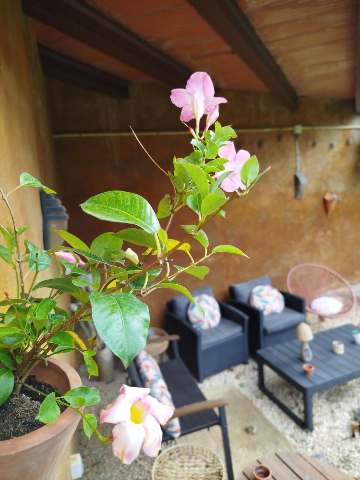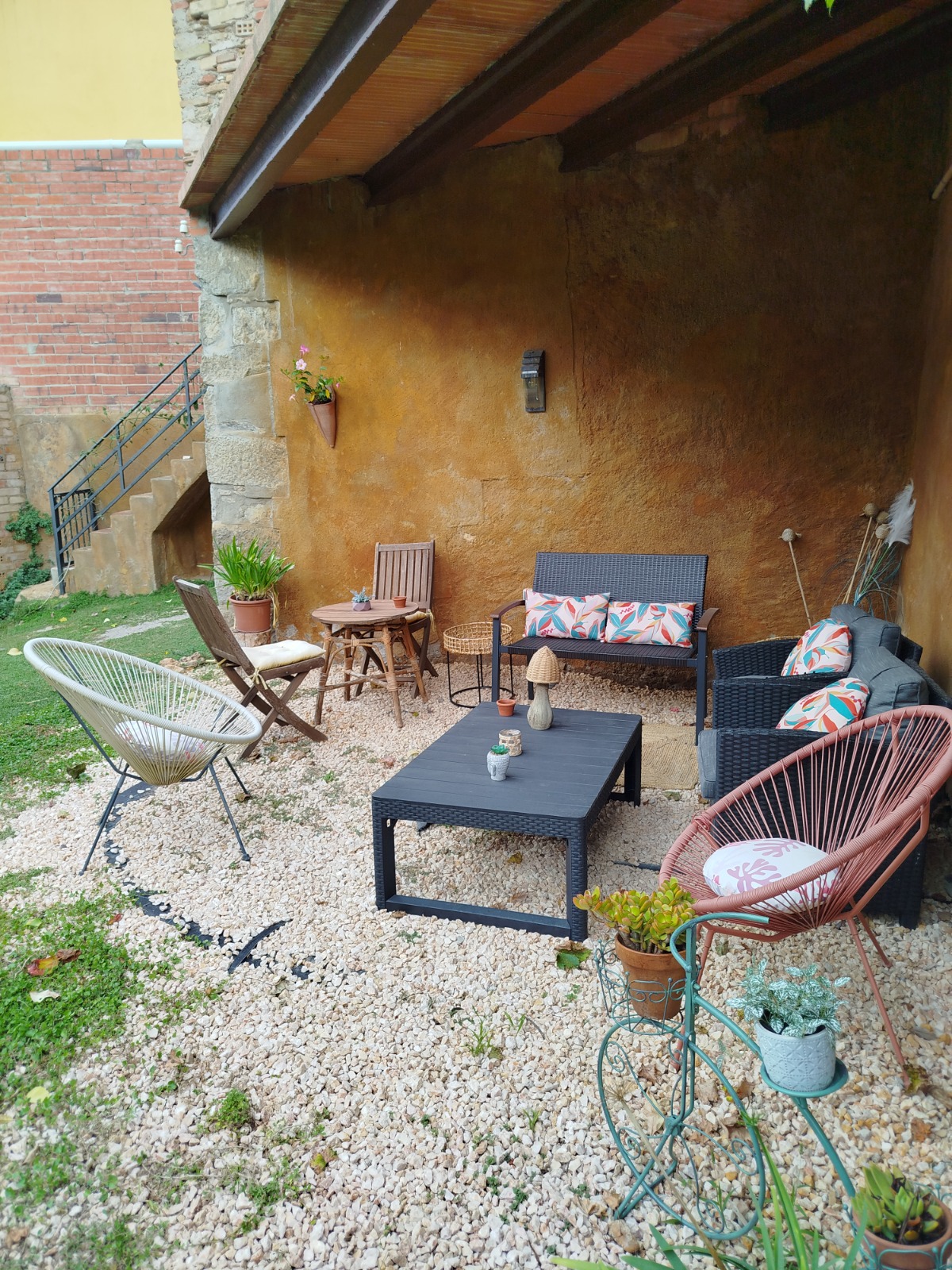 Terrassa de 19m2 amb taula i cadires, i a la planta baixa, porxo, zona chillout, barbacoa i jardí de 80m2.
