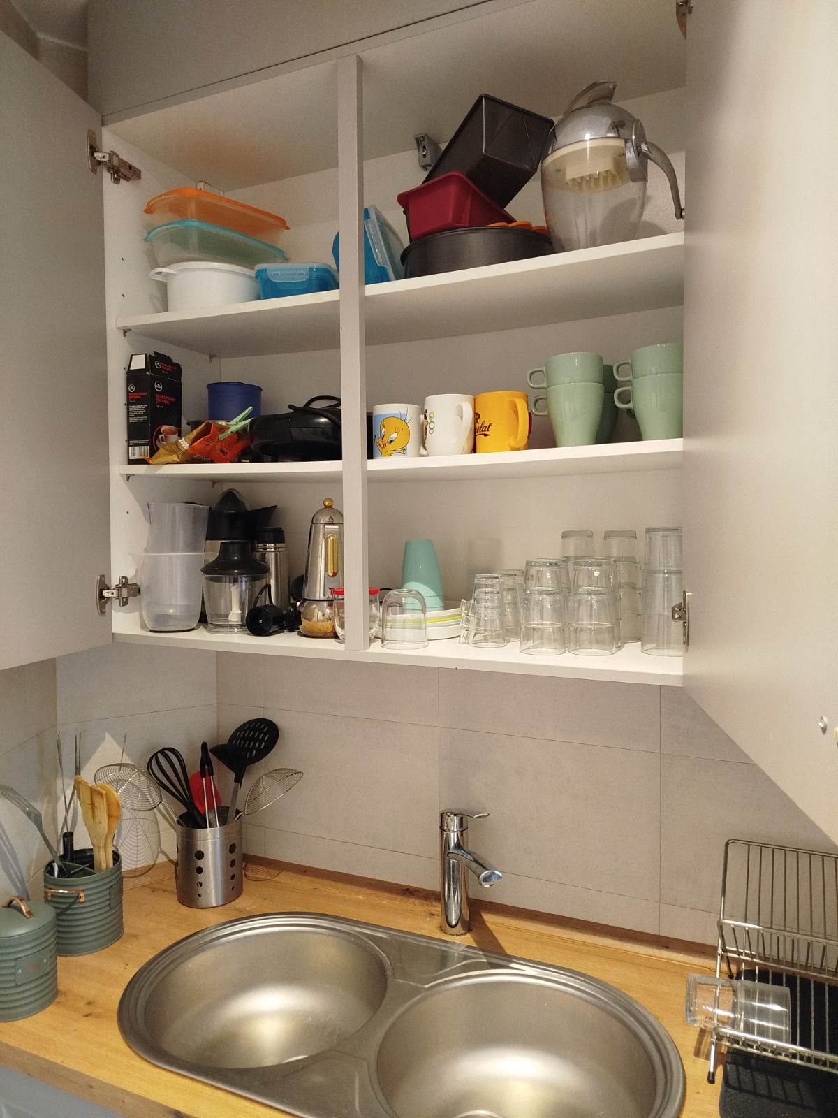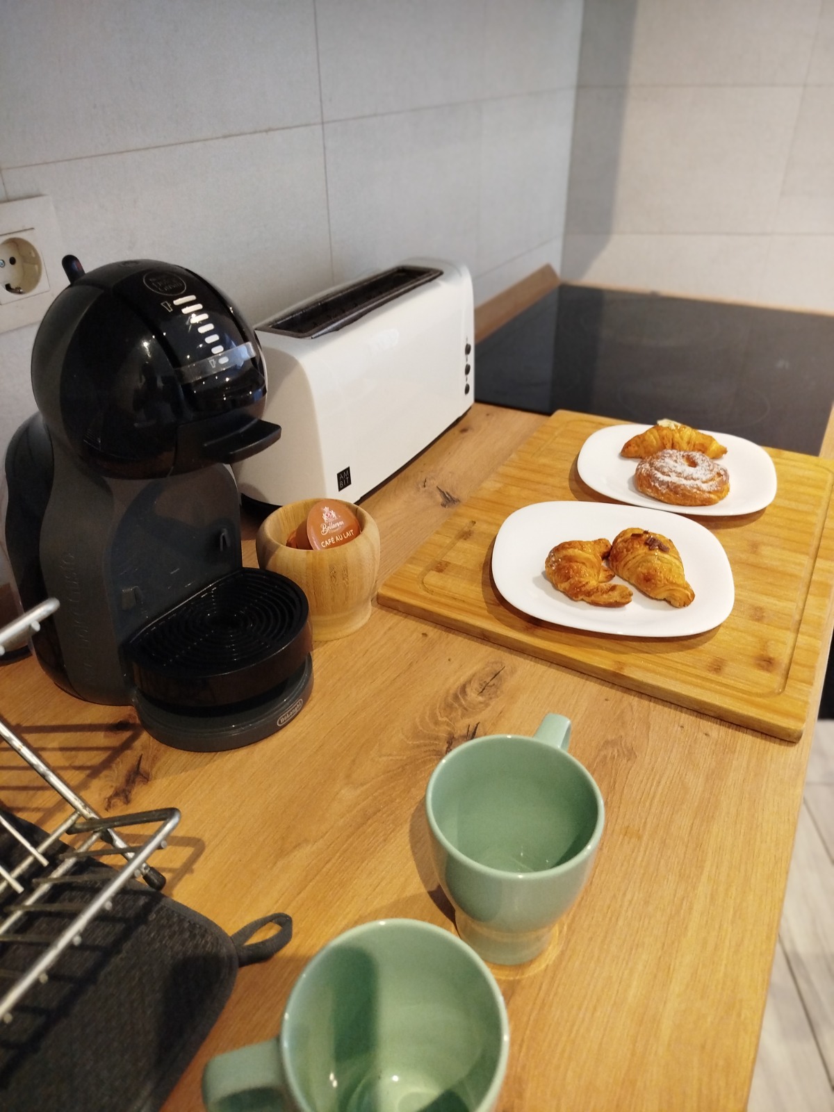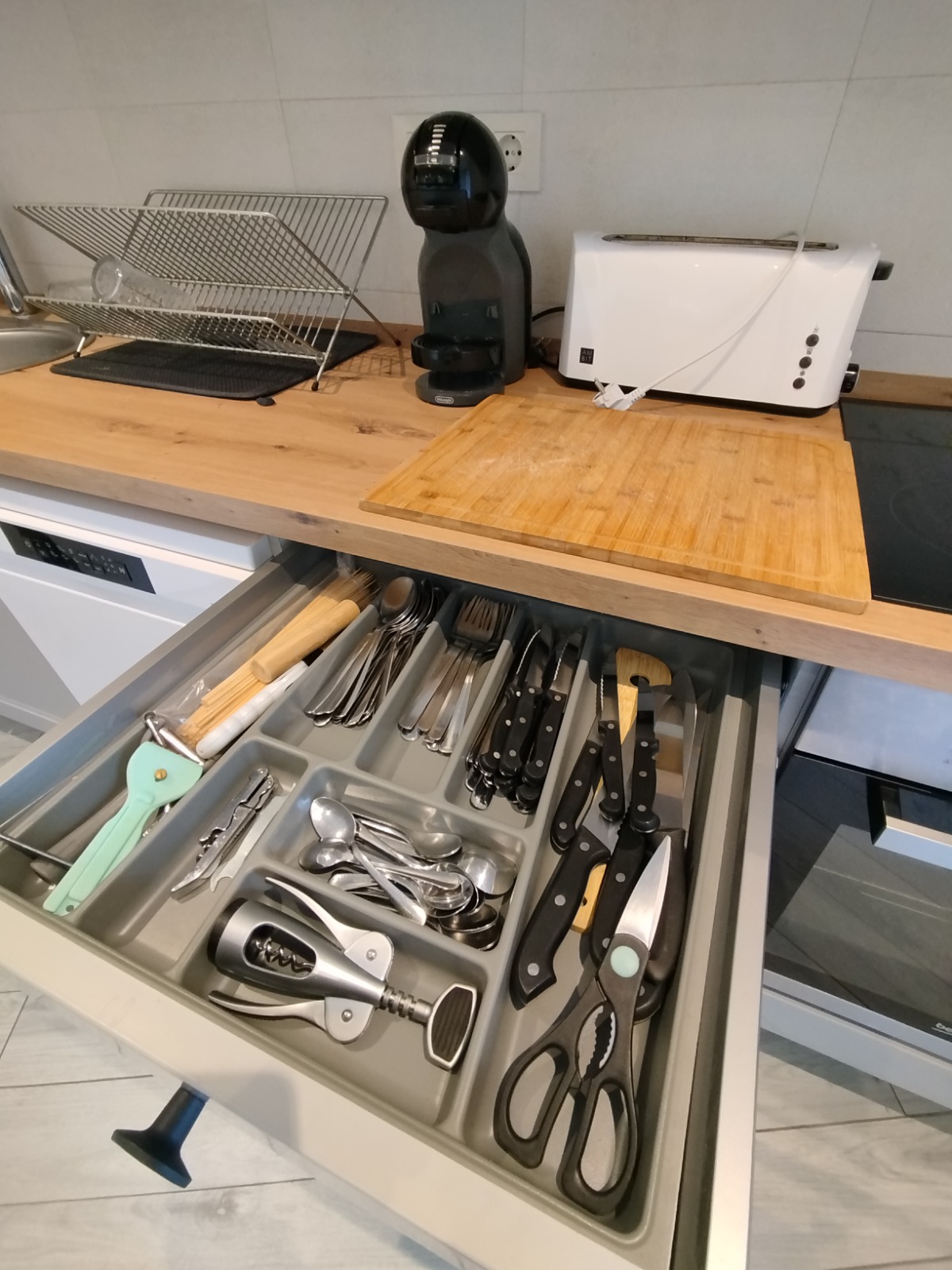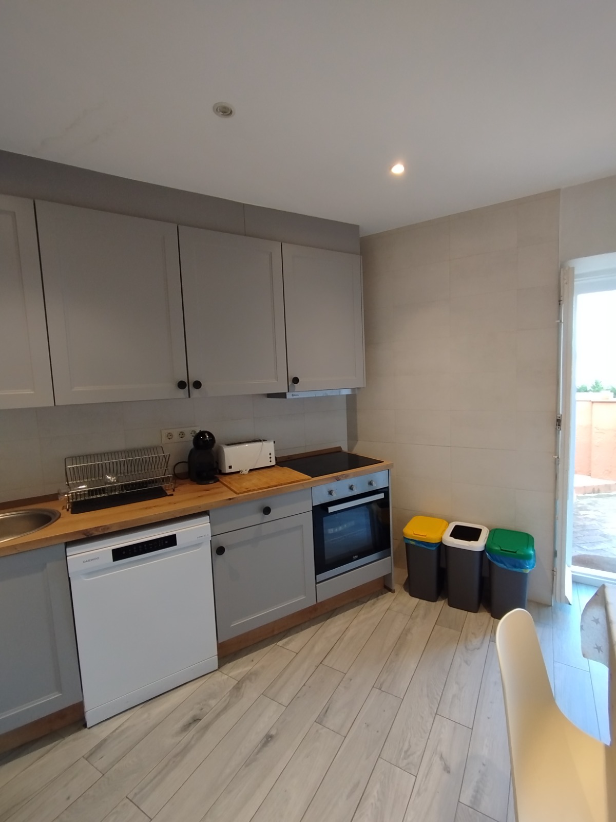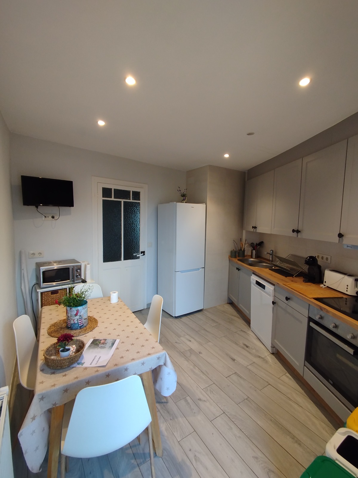 Totalment equipada: taula, TV, nevera, rentaplats, forn, microones, vitroceràmica, cafetera Dolce Gusto i utensilis.