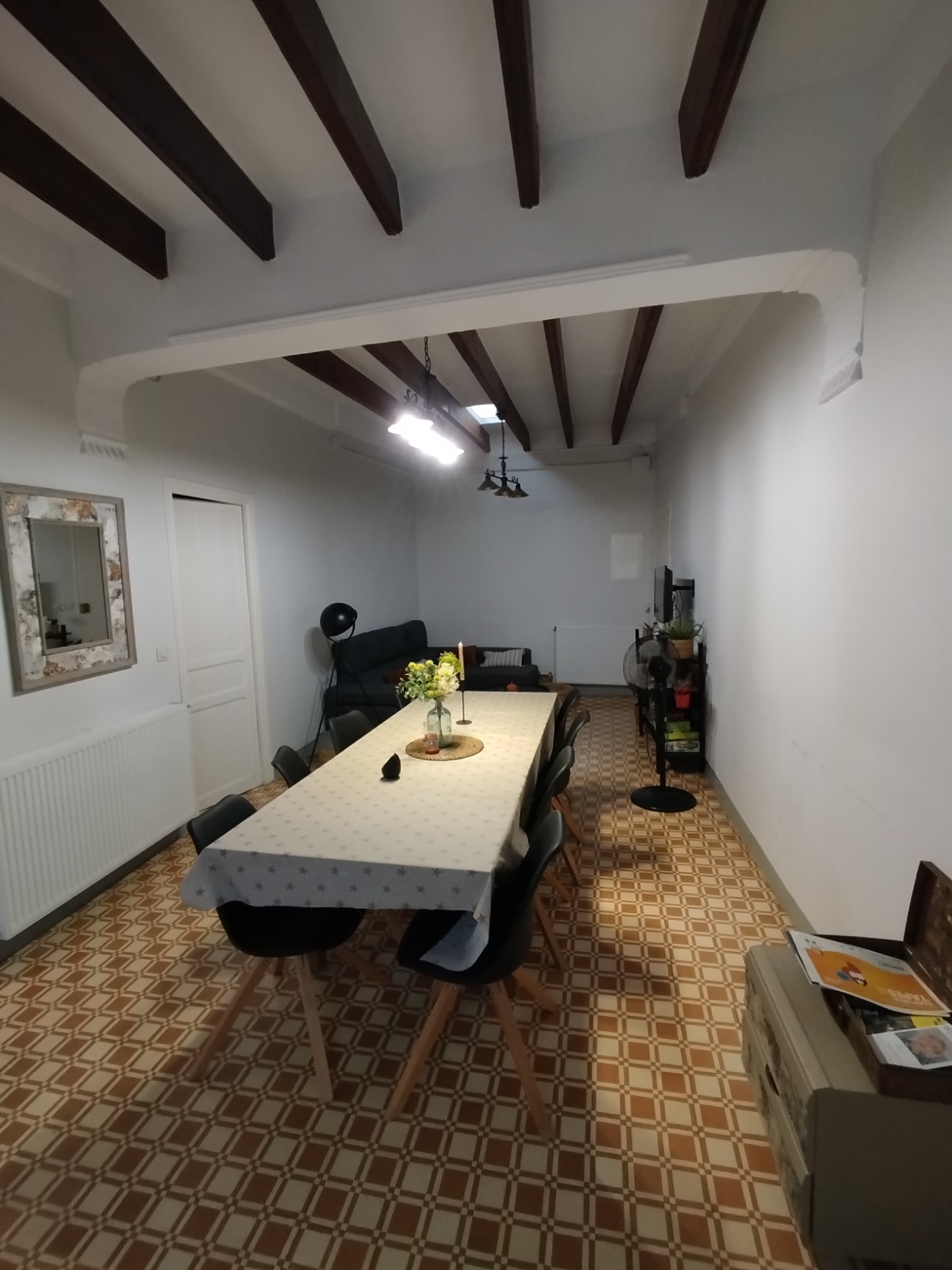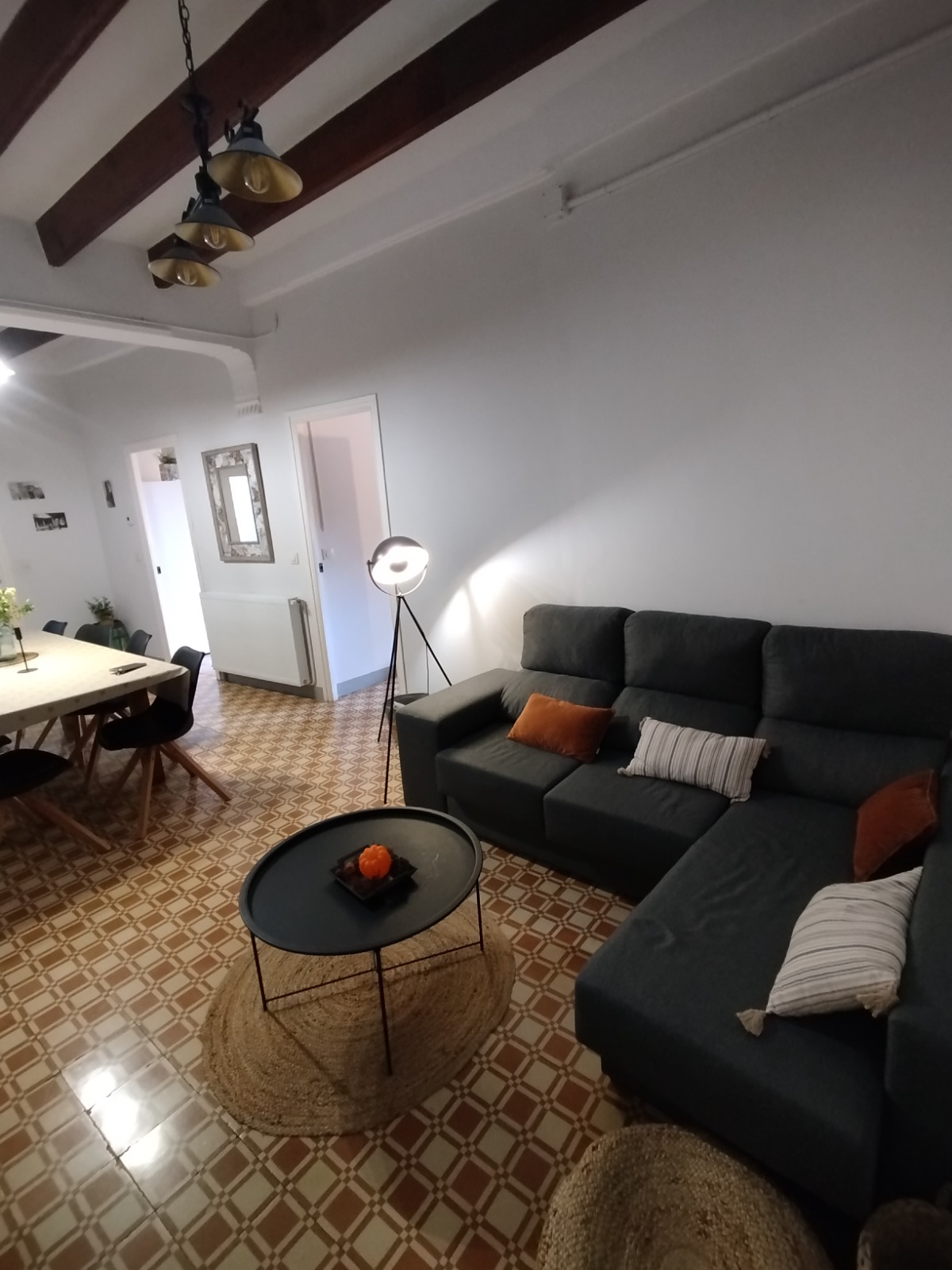 Àmplia amb televisió Smart TV, sofà i taula amb capacitat per a 8 persones.