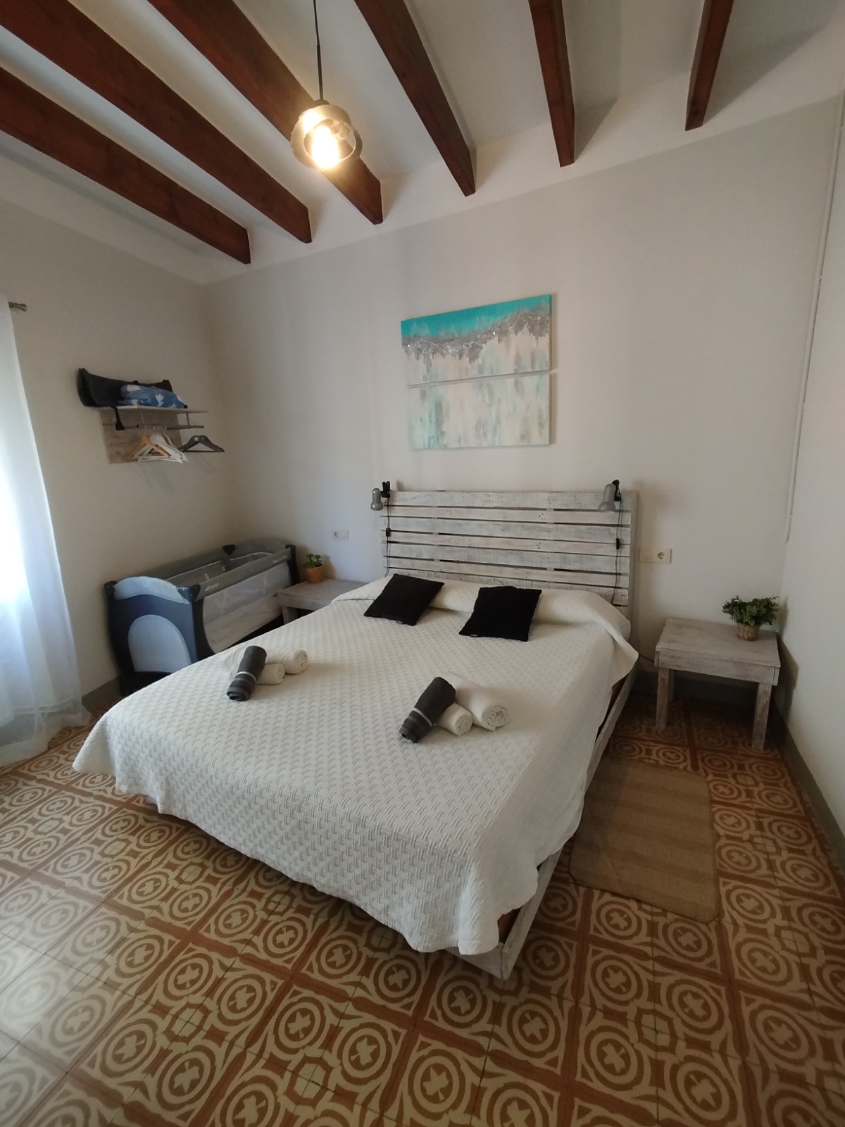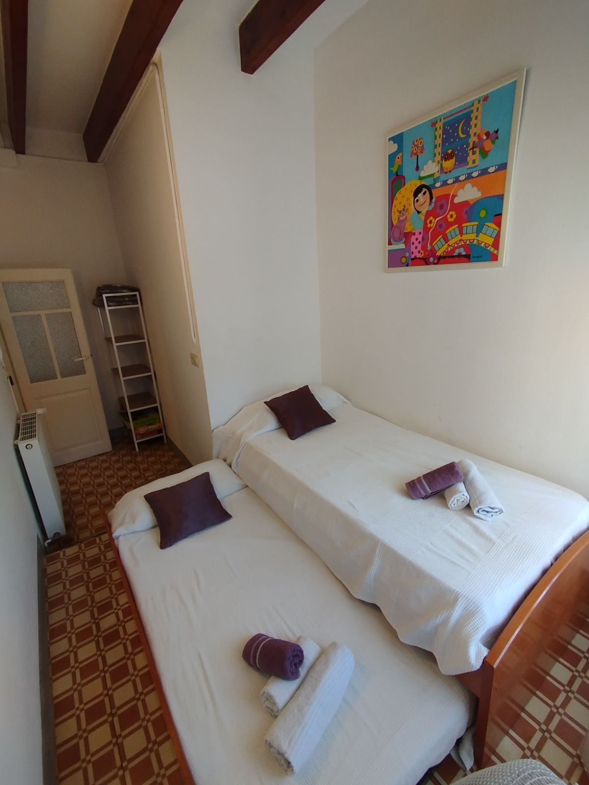 Capacitat per 8 persones + 1 (plegatí). 4 habitacions: 3 dobles i 1 amb dos llits individuals. Possibilitat de bressol per bebè.